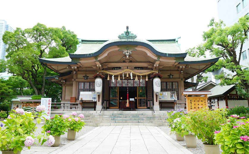 坐摩いかすり神社はこの地方の産土神として尊崇を集める古社で、近隣住民から“ざまさん”の愛称で親しまれています。五柱の御祭神を総称して坐摩大神いかすりのおおかみといい、古くから安産、家庭守護、旅行安全の神として知られています。